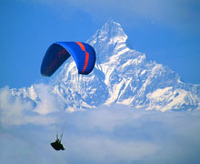 The main area for flying in Nepal is the Annapurna region, more specifically the Pokhara valley. This lakeside town is Nepal's second "city", nestled at the foot of the Annapurna Himal, the views commanded from here, of 3 of the worlds 8000m peaks, are unsurpassed. At an altitude of 800m ASL the subtropical climate means that, year round, it is short and T-shirt weather. The micro-climate of the valley makes it an ideal area for flying.